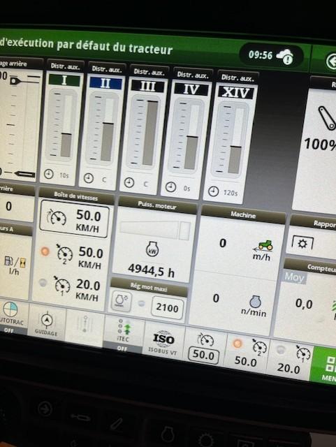 JD 6215r autopower,command Pro, 50km/h,année2019,4950h,predisposition gps,roues 650/85/38et600/70/28 vredestein,frein pneumatique et hydraulique,LS,iso bus,feux led,suspension cabine et pont avant,très beau tracteur !